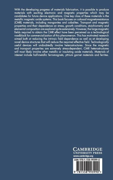 With the developing progress of materials fabrication, it is possible to produce materials with exciting electronic and magnetic properties which may be candidates for future device applications. One key class of these materials is the metallic magnetic oxide systems. This book focuses on colossal magnetoresistance (CMR) materials, including manganites and cobalites. Transport and magnetic properties and their dependence on stress, growth conditions, stoichiometry and elemental composition are explored quite extensively. However, the large magnetic fields required to obtain the CMR effect have been perceived as a technological roadblock for commercialization of this phenomenon. This has motivated research aimed both at reducing the intrinsic field dependence as well as at developing novel device structures that will reduce the required effective field. Technologically useful devices will undoubtedly involve heterostructures. Since the magnetic and transport properties are extremely stress-dependent, CMR heterostructures will most likely involve other metallic or insulating oxide materials. Materials of interest include half-metallic ferromagnets, yttrium garnet materials and ferrites.