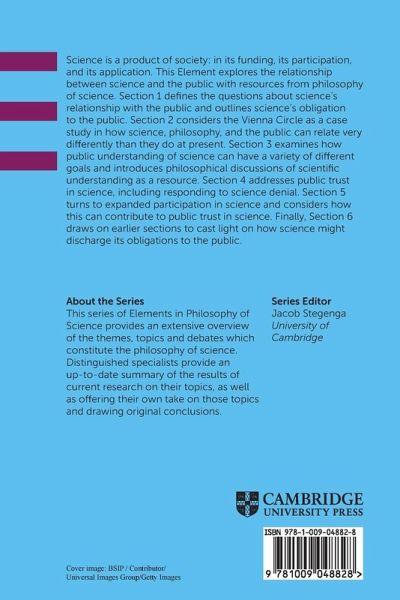 This Element explores the relationship between science and the public with resources from philosophy of science. It covers science's relationship to the public, public trust in science, science denial, expanded participation in science, and science's obligation to the public.
