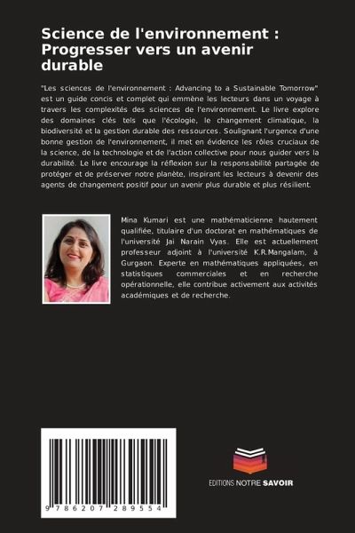 "Les sciences de l'environnement : Advancing to a Sustainable Tomorrow" est un guide concis et complet qui emmène les lecteurs dans un voyage à travers les complexités des sciences de l'environnement. Le livre explore des domaines clés tels que l'écologie, le changement climatique, la biodiversité et la gestion durable des ressources. Soulignant l'urgence d'une bonne gestion de l'environnement, il met en évidence les rôles cruciaux de la science, de la technologie et de l'action collective pour nous guider vers la durabilité. Le livre encourage la réflexion sur la responsabilité partagée de protéger et de préserver notre planète, inspirant les lecteurs à devenir des agents de changement positif pour un avenir plus durable et plus résilient.