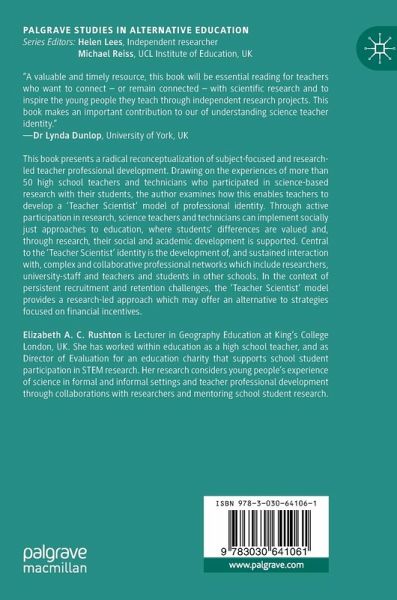 This book presents a radical reconceptualization of subject-focused and research-led teacher professional development. Drawing on the experiences of more than 50 high school teachers and technicians who participated in science-based research with their students, the author examines how this enables teachers to develop a 'Teacher Scientist' model of professional identity. Through active participation in research, science teachers and technicians can implement socially just approaches to education, where students' differences are valued and, through research, their social and academic development is supported. Central to the 'Teacher Scientist' identity is the development of, and sustained interaction with, complex and collaborative professional networks which include researchers, university-staff and teachers and students in other schools. In the context of persistent recruitment and retention challenges, the 'Teacher Scientist' model provides a research-led approach which may offer analternative to strategies focused on financial incentives.