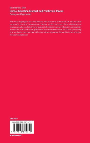 This book highlights the development and outcomes of research on and practical experience in science education in Taiwan. As the outcomes of the scholarship on science education in Taiwan have garnered attention in science education communities around the world, this book gathers the most relevant research on Taiwan, presenting it in a cohesive overview that will move science education forward in terms of policy, research and practice.