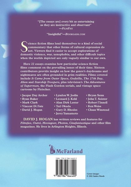 From the inception of the science fiction film, writers, directors, producers, and actors have understood that the genre lends itself to a level of social commentary not available in other formats. Viewers find it easier to accept explorations of such issues as domestic violence, war, xenophobia, faith, identity, racism, and other difficult topics when the protagonists exist in future times or other worlds that are only vaguely similar to our own. The 22 original essays in this collection examine how the issues in particular science fiction films--from 1930's High Treason to 1999's The Iron Giant--reflect and comment on the prevailing issues of their time. The 16 writers (including such noted contributors as Ted Okuda, Gary Don Rhodes, Bryan Senn, John Soister and Ken Weiss) provide insight on how the genre's wistful daydreaming, forthcoming wonders, and nightmarish scenarios are often grounded in the grimmer realities of the human condition. Films covered include It Came from Outer Space, Godzilla, The 27th Day, Alien and Starship Troopers, plus television's The Adventures of Superman, the Flash Gordon serials, and vintage space cartoons by Fleischer.