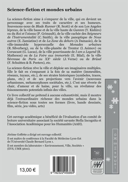 la science-fiction aime à s'emparer de la ville, qui en devient un personnage avec ses traits de caractère et ses humeurs. Souvenons-nous de Blade Runner (R. Scott) et de son Los Angeles lépreux, de la ville basse et de la ville haute de Gunnm (Y. Kishiro) ou du Roi et l'oiseau (P. Grimault), de la ville cachée des Seigneurs de l'Instrumentalité (C. Smith), de la ville panoptique de Nous autres (E. Zamiatine) ou de La Zone du dehors (A. Damasio), de la ville-immeuble hypersexuelle des Monades urbaines (R. Silverberg), de la ville-planète de Trentor (I. Asimov) ou Coruscant (G. Lucas), de la ville pourrissante de I Am Legend (R. Matheson) ou de La Foire aux immortels (E. Bilal), de la ville fiévreuse de Paris au XXe siècle (J. Verne) ou de Brüsel (F. Schuiten et B. Peeters), etc.La science-fiction rêve la ville et déploie ses imaginaires multiples. Elle le fait en s'emparant à la fois de sa matière (immeubles, réseaux, tuyaux, voiries...), de ses strates historiques (symboles, traces, plans...) et de ses projections vers l'avenir (rénovations urbaines, métamorphoses sociétales...). C'est une rêverie de chair, d'amour et de haine adressée à la ville, un révélateur des foisonnements potentiels infinis des villes.Ce livre collectif ne prétend à aucune exhaustivité, mais il montre déjà l'extraordinaire richesse des mondes urbains dans la science-fiction sous toutes ses formes (livres, bande dessinée, film, série, jeu vidéo, arts).