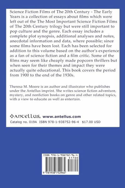 A collection of essays by the author about films which were left out of The Most Important Science Fiction Films of The 20th Century trilogy but were still important to pop culture and the genre. The chronology covers all science fiction films from 1900 to 1939. Each essay includes a complete plot synopsis, additional analyses and notes, anecdotal information and data, where possible; since some films have been lost. Each has been selected for addition to this volume based on the author's experience as a fan of science fiction and a film critic. Some of the films may seem like cheaply made popcorn thrillers but when seen for their themes and impact they were actually quite educational.