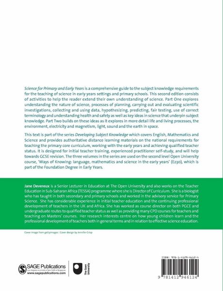 Science for Primary and Early Years is a comprehensive guide to the subject knowledge requirements for the teaching of science in early years settings and primary schools. This second edition consists of activities to help the reader extend their own understanding of science. Part One explores understanding the nature of science, processes of planning, carrying out and evaluating scientific investigations, collecting and using data, hypothesizing, predicting, fair testing, use of correct terminology and understanding health and safety as well as key ideas in science that underpin subject knowledge. Part Two builds on these ideas as it explores in more detail life and living processes, the environment, electricity and magnetism, light, sound and the earth in space.