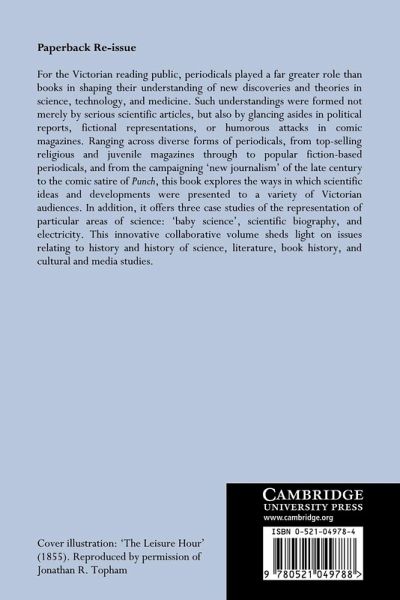 List of illustrations Preface 1. Introduction Gowan Dawson, Richard Noakes and Jonathan R. Topham Part I. Genres: 2. The Mirror of Literature, Amusement and Instruction and cheap miscellanies in early nineteenth-century Britain Jonathan R. Topham 3. The Wesleyan-Methodist Magazine and religious monthlies in early nineteenth-century Britain Jonathan R. Topham 4. Punch and comic journalism in mid-Victorian Britain Richard Noakes 5. The Cornhill Magazine and shilling monthlies in mid-Victorian Britain Gowan Dawson 6. The Boy's Own Paper and late-Victorian juvenile magazines Richard Noakes 7. The Review of Reviews and the new journalism in late-Victorian Britain Gowan Dawson Part II. Themes: 8. Tickling babies: gender, authority and 'baby science' Sally Shuttleworth 9. Scientific biography in the periodical press Geoffrey Cantor 10. Profit and prophecy: electricity in the late-Victorian periodical Graeme Gooday Notes Select bibliography Index.