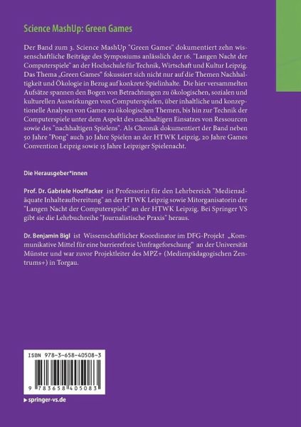Der Band zum 3. Science MashUp "Green Games" dokumentiert zehn wissenschaftliche Beiträge des Symposiums anlässlich der 16. "Langen Nacht der Computerspiele" an der Hochschule für Technik, Wirtschaft und Kultur Leipzig. Das Thema "Green Games" fokussiert sich nicht nur auf die Themen Nachhaltigkeit und Ökologie in Bezug auf konkrete Spielinhalte. Die hier versammelten Aufsätze spannen den Bogen von Betrachtungen zu ökologischen, sozialen und kulturellen Auswirkungen von Computerspielen, über inhaltliche und konzeptionelle Analysen von Games zu ökologischen Themen, bis hin zur Technik der Computerspiele unter dem Aspekt des nachhaltigen Einsatzes von Ressourcen sowie des "nachhaltigen Spielens". Als Chronik dokumentiert der Band neben 50 Jahre "Pong" auch 30 Jahre Spielen an der HTWK Leipzig, 20 Jahre Games Convention Leipzig sowie 15 Jahre Leipziger Spielenacht.