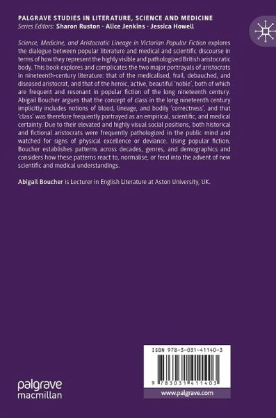 Science, Medicine, and Aristocratic Lineage in Victorian Popular Fiction explores the dialogue between popular literature and medical and scientific discourse in terms of how they represent the highly visible an pathologized British aristocratic body. This books explores and complicates the two major portrayals of aristocrats in nineteenth-century literature: that of the medicalised, frail, debauched, and diseased aristocrat, and that of the heroic, active, beautiful 'noble', both of which are frequent and resonant in popular fiction of the long nineteenth century. Abigail Boucher argues that the concept of class in the long nineteenth century implicitly includes notions of blood, lineage, and bodily 'correctness', and that 'class' was therefore frequently portrayed as an empirical, scientific, and medical certainty. Due to their elevated and highly visual social positions, both historical and fictional aristocrats were frequently pathologized in the public mind and watchedfor signs of physical excellence or deviance. Using popular fiction, Boucher establishes patterns across decades, genres, and demographics and considers how these patterns react to, normalise, or feed into the advent of new scientific and medical understandings.