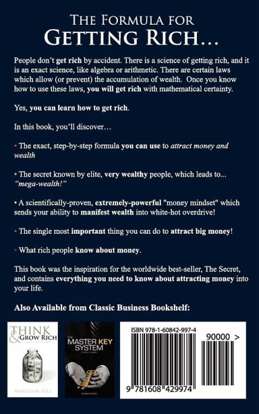 "The Formula for Getting Rich..." People don't get rich by accident. There is a science of getting rich, and it is an exact science, like algebra or arithmetic. There are certain laws which allow (or prevent) the accumulation of wealth. Once you know how to use these laws, you will get rich with mathematical certainty. Yes, you can learn how to get rich. In this book, you'll discover... ¿ The exact, step-by-step formula you can use to attract money and wealth ¿ The secret known by elite, very wealthy people, which leads to... "mega-wealth!" ¿ A scientifically-proven, extremely-powerful "money mindset" which sends your ability to manifest wealth into white-hot overdrive! ¿ The single most important thing you can do to attract big money! ¿ What rich people know about money. This book was the inspiration for the worldwide best-seller, The Secret, and contains everything you need to know about attracting money into your life.