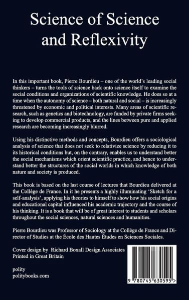 Bourdieu argues that that emergence of the social sciences has had the effect of calling in to question the objectivity and validity of scientific activity, by relating it to its historic conditions. It is this relativistic and at times nihilistic interpretation of science that Bourdieu sets out to challenge, in an attempt to combine an accurate vision of the scientific arena with a realist theory of knowledge. The book also offers an elaboration of Bourdieu’s notion of the scientific field and uses it to address a range of issues and debates in the natural and social sciences.