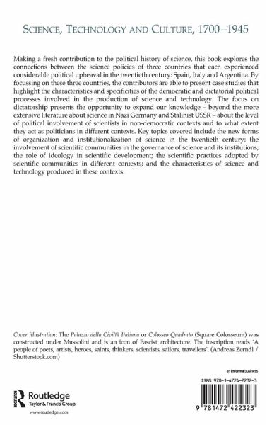 Making a fresh contribution to the political history of science, this book explores the connections between the science policies of three countries that each experienced considerable political upheaval in the twentieth century: Spain, Italy and Argentina. By focussing on these three countries, the contributors are able to present case studies that highlight the characteristics and specificities of the democratic and dictatorial political processes involved in the production of science and technology.