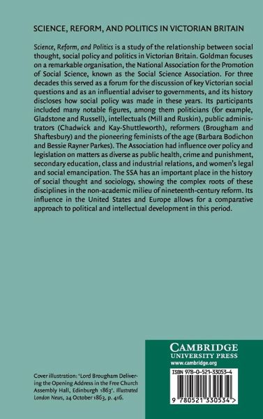 This book is a study of the relationships between social thought, social policy and politics in Victorian Britain. Goldman focuses on the activity of the National Association for the Promotion of Social Science, known as the Social Science Association. For three decades this served as a forum for the discussion of Victorian social questions and as an influential adviser to governments, and its history discloses how social policy was made in these years. The Association, which attracted many powerful contributors, including politicians, civil servants, intellectuals and reformers, had influence over policy and legislation on matters as diverse as public health and women's legal and social emancipation. The SSA reveals the complex roots of social science and sociology buried in the non-academic milieu of nineteenth-century reform. And its influence in the United States and Europe allows for a comparative approach to political and intellectual development in this period.
