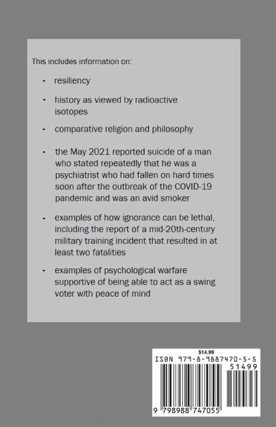 This includes information on: resiliency, radioactivity, politics, religion, extremely bizarre phenomena, relating card spreads to the mysteries of noumena, science in general, miniature biographies, and incisive memoirs of varying lengths. Examples:Concept of a Tarot Deck inspired by Uranium-235 Concept of a Tarot Deck inspired by Plutonium-239 Fierce interactions involving the intersections of psychological warfare in defense of swing voting, psychological warfare as part of interfaith dialogues, discussions of The First Amendment to The U.S. Constitution, various peacemaking, the reported suicide of a man who said he was a psychiatrist, descriptions from an eyewitness survivor to a military training exercise that resulted in at least two casualties, and more