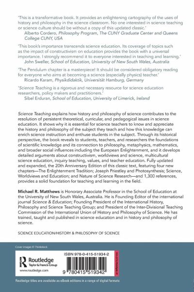 Science Teaching explains how history and philosophy of science contributes to the resolution of persistent theoretical, curricular, and pedagogical issues in science education. It shows why it is essential for science teachers to know and appreciate the history and philosophy of the subject they teach and how this knowledge can enrich science instruction and enthuse students in the subject. Through its historical perspective, the book reveals to students, teachers, and researchers the foundations of scientific knowledge and its connection to philosophy, metaphysics, mathematics, and broader social influences including the European Enlightenment, and develops detailed arguments about constructivism, worldviews and science, multicultural science education, inquiry teaching, values, and teacher education. Fully updated and expanded, the 20th Anniversary Edition of this classic text, featuring four new chapters-The Enlightenment Tradition; Joseph Priestley and Photosynthesis; Science, Worldviews and Education; and Nature of Science Research-and 1,300 references, provides a solid foundation for teaching and learning in the field.