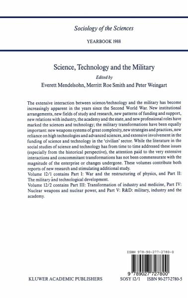 The extensive interaction between science/technology and the military has become increasingly apparent in the years since the Second World War. New institutional arrangements, new fields of study and research, new patterns of funding and support, new relations with industry, the academy and the state, and new professional roles have marked the sciences and technology; the military transformations have been equally important: new weapons systems of great complexity, new strategies and practices, new reliance on high technologies and advanced sciences, and extensive involvement in the funding of science and technology in the 'civilian' sector. While the literature in the social studies of science and technology has from time to time addressed these issues (especially from the historical perspective), the attention paid to the very extensive interactions and concommitant transformations has not been commensurate with the magnitude of the enterprise or changes undergone. These volumescontribute both reports of new research and stimulating additional study.Volume 12/1 contains Part I: War and the restructuring of physics, and Part II: The military and technological development.Volume 12/2 contains Part III: Transformation of industry and medicine, Part IV: Nuclear weapons and nuclear power, and Part V: R&D: military, industry and the academy.