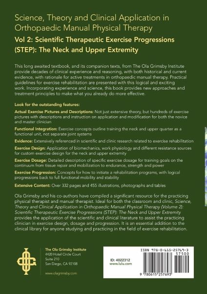 This long awaited textbook, and its companion texts, from The Ola Grimsby Institute provide decades of clinical experience and reasoning, with both historical and current evidence, with rationale for active treatments in orthopaedic manual therapy. Practical guidelines for exercise rehabilitation are presented with this logical and exciting work. Incorporating experience and science, this book provides new approaches and treatment principles to make what you already do more effective. Extensive Content: Over 332 pages and 455 illustrations, photographs and tables Ola Grimsby and his co-authors have compiled a significant resource for the practicing physical therapist and manual therapist. Ideal for both the classroom and clinic.