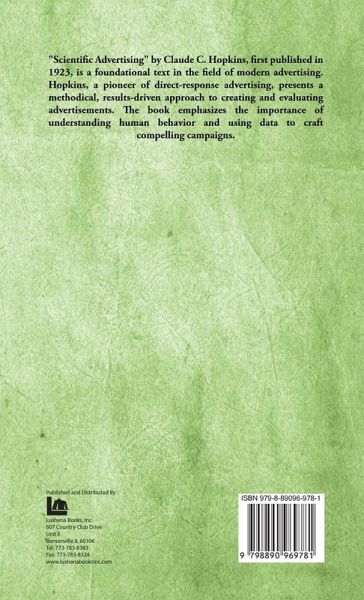 "Scientific Advertising" by Claude C. Hopkins, first published in 1923, is a foundational text in the field of modern advertising. Hopkins, a pioneer of direct-response advertising, presents a methodical, results-driven approach to creating and evaluating advertisements. The book emphasizes the importance of understanding human behavior and using data to craft compelling campaigns.