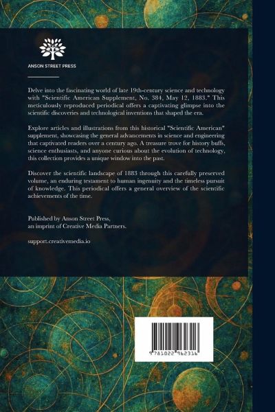 Delve into the fascinating world of late 19th-century science and technology with "Scientific American Supplement, No. 384, May 12, 1883." This meticulously reproduced periodical offers a captivating glimpse into the scientific discoveries and technological inventions that shaped the era. Explore articles and illustrations from this historical "Scientific American" supplement, showcasing the general advancements in science and engineering that captivated readers over a century ago. A treasure trove for history buffs, science enthusiasts, and anyone curious about the evolution of technology, this collection provides a unique window into the past. Discover the scientific landscape of 1883 through this carefully preserved volume, an enduring testament to human ingenuity and the timeless pursuit of knowledge. This periodical offers a general overview of the scientific achievements of the time. This work has been selected by scholars as being culturally important, and is part of the knowledge base of civilization as we know it. This work is in the public domain in the United States of America, and possibly other nations. Within the United States, you may freely copy and distribute this work, as no entity (individual or corporate) has a copyright on the body of the work. Scholars believe, and we concur, that this work is important enough to be preserved, reproduced, and made generally available to the public. We appreciate your support of the preservation process, and thank you for being an important part of keeping this knowledge alive and relevant.