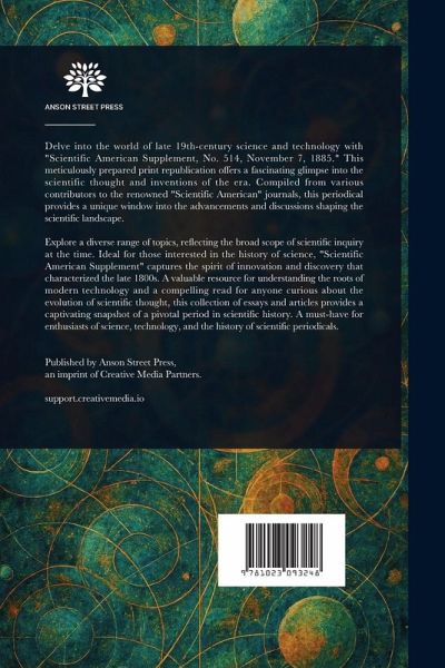 Delve into the world of late 19th-century science and technology with "Scientific American Supplement, No. 514, November 7, 1885." This meticulously prepared print republication offers a fascinating glimpse into the scientific thought and inventions of the era. Compiled from various contributors to the renowned "Scientific American" journals, this periodical provides a unique window into the advancements and discussions shaping the scientific landscape. Explore a diverse range of topics, reflecting the broad scope of scientific inquiry at the time. Ideal for those interested in the history of science, "Scientific American Supplement" captures the spirit of innovation and discovery that characterized the late 1800s. A valuable resource for understanding the roots of modern technology and a compelling read for anyone curious about the evolution of scientific thought, this collection of essays and articles provides a captivating snapshot of a pivotal period in scientific history. A must-have for enthusiasts of science, technology, and the history of scientific periodicals. This work has been selected by scholars as being culturally important, and is part of the knowledge base of civilization as we know it. This work is in the public domain in the United States of America, and possibly other nations. Within the United States, you may freely copy and distribute this work, as no entity (individual or corporate) has a copyright on the body of the work. Scholars believe, and we concur, that this work is important enough to be preserved, reproduced, and made generally available to the public. We appreciate your support of the preservation process, and thank you for being an important part of keeping this knowledge alive and relevant.