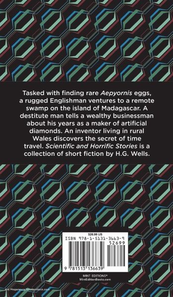 Scientific and Horrific Stories is a collection of short fiction by H. G. Wells. Despite his humble beginnings as the son of English servants, H. G. Wells would become one of the most revered writers of his day. His stories of adventure, utopia, and terror inspired such vastly different figures as Vladimir Nabokov, Winston Churchill, Jorge Luis Borges, and Sinclair Lewis. Many of his novels have been adapted for film, theater, radio, and television, including The Time Machine (1895), The Island of Doctor Moreau (1896), and The War of the Worlds (1898). Scientific and Horrific Stories includes twenty-six tales from across Wells' career. "The Chronic Argonauts," written while Wells was recuperating from an illness with friends in Stoke-on-Trent, is a story of time travel set in rural Wales that predates his beloved The Time Machine by seven years. “Æpyornis Island” is a terrifying tale of greed and survival that originally appeared in an 1894 issue of the Pall Mall Budget. Tasked with finding rare Aepyornis eggs, a rugged Englishman named Butcher ventures to a remote swamp on the island of Madagascar. When one of the eggs unexpectedly hatches, he is left stranded and at the mercy of a vicious creature that was believed to be extinct. In “The Diamond Maker,” which also appeared in the Pall Mall Budget, a destitute man tells a wealthy businessman about his years as a maker of artificial diamonds, a time of great promise that ultimately led to his downfall. This edition of H. G. Wells’ Scientific and Horrific Stories is a classic of English literature reimagined for modern readers. Since our inception in 2020, Mint Editions has kept sustainability and innovation at the forefront of our mission. Each and every Mint Edition title gets a fresh, professionally typeset manuscript and a dazzling new cover, all while maintaining the integrity of the original book. With thousands of titles in our collection, we aim to spotlight diverse public domain works to help them find modern audiences. Mint Editions celebrates a breadth of literary works, curated from both canonical and overlooked classics from writers around the globe.