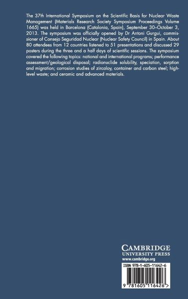 The 37th International Symposium on the Scientific Basis for Nuclear Waste Management was held in Barcelona, September-October, 2013.