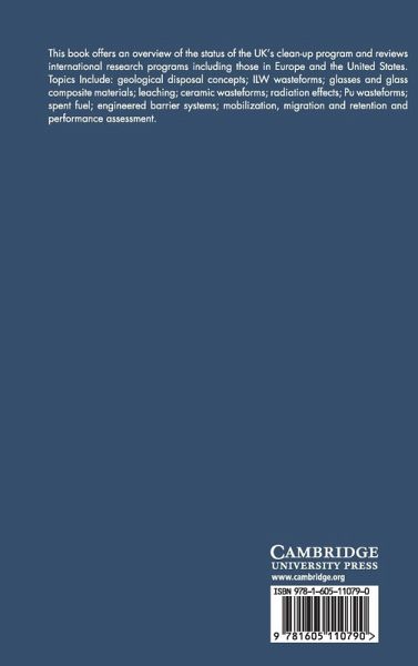 This book offers an overview of the status of the UK's clean-up program and reviews international research programs including those in Europe and the United States. Topics Include: geological disposal concepts; ILW wasteforms; glasses and glass composite materials; leaching; ceramic wasteforms; radiation effects; Pu wasteforms; spent fuel; engineered barrier systems; mobilization, migration and retention and performance assessment.