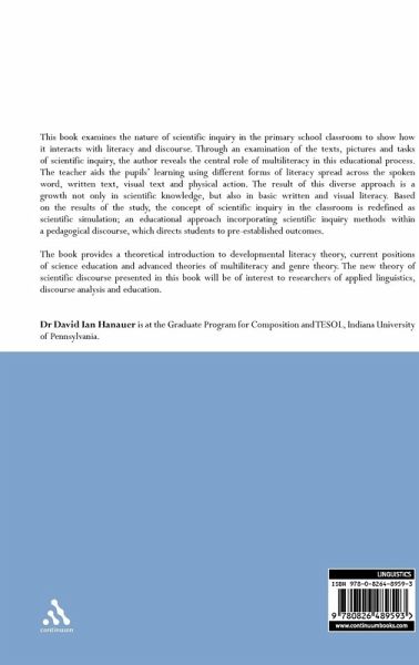 Scientific Discourse examines the nature of scientific inquiry in the primary school classroom to show how this interacts with early literacy. Through an examination of the texts used and produced by pupils studying science the author shows how what is at work in this context of scientific discourse is actually multiliteracy. The teacher aids the pupils' learning using different forms of literacy spread across the spoken word, written text, visual text and physical action. The result of this diverse approach is a growth not only in scientific knowledge, but basic literacy. The book provides a theoretical introduction to developmental literacy theory, current positions of science education and advanced theories of multiliteracy and genre theory. The new theory of scientific discourse presented in this book will be of interest to researchers of applied linguistics, discourse analysis and education.