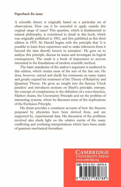 A scientific theory is originally based on a particular set of observations. How can it be extended to apply outside this original range of cases? This question, which is fundamental to natural philosophy, is considered in detail in this book, which was originally published in 1931, and first published as this third edition in 1973. Sir Harold begins with the principle that 'it is possible to learn from experience and to make inferences from beyond the data directly known to sensation'. He goes on to analyse this principle, discuss its status and investigate its logical consequences. The result is a book of importance to anyone interested in the foundations of modern scientific method. His thesis provides a consistent account of how the theories proposed by physicists have been derived from, and are supported by, experimental data.