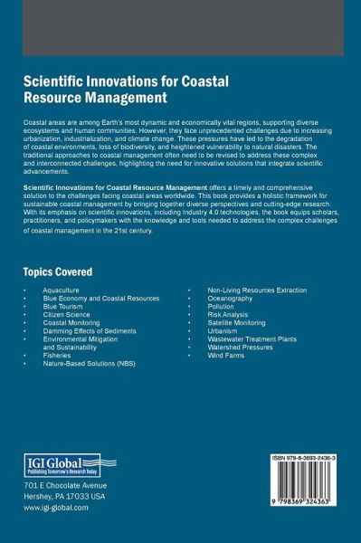 Coastal areas are among Earth's most dynamic and economically vital regions, supporting diverse ecosystems and human communities. However, they face unprecedented challenges due to increasing urbanization, industrialization, and climate change. These pressures have led to the degradation of coastal environments, loss of biodiversity, and heightened vulnerability to natural disasters. The traditional approaches to coastal management often need to be revised to address these complex and interconnected challenges, highlighting the need for innovative solutions that integrate scientific advancements. Scientific Innovations for Coastal Resource Management offers a timely and comprehensive solution to the challenges facing coastal areas worldwide. This book provides a holistic framework for sustainable coastal management by bringing together diverse perspectives and cutting-edge research. With its emphasis on scientific innovations, including Industry 4.0 technologies, the book equips scholars, practitioners, and policymakers with the knowledge and tools needed to address the complex challenges of coastal management in the 21st century.