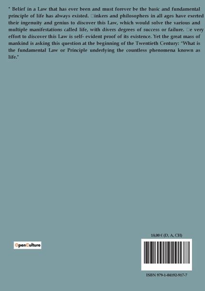 " Belief in a Law that has ever been and must forever be the basic and fundamental principle of life has always existed. ¿inkers and philosophers in all ages have exerted their ingenuity and genius to discover this Law, which would solve the various and multiple manifestations called life, with divers degrees of success or failure. ¿e very effort to discover this Law is self- evident proof of its existence. Yet the great mass of mankind is asking this question at the beginning of the Twentieth Century: ¿What is the fundamental Law or Principle underlying the countless phenomena known as life."