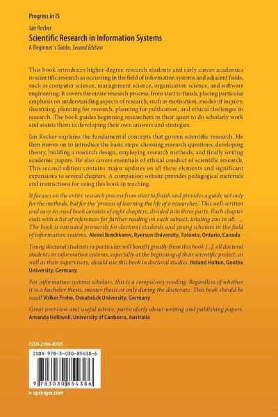 This book introduces higher-degree research students and early career academics to scientific research as occurring in the field of information systems and adjacent fields, such as computer science, management science, organization science, and software engineering. Instead of focusing primarily on research methods as many other textbooks do, it covers the entire research process, from start to finish, placing particular emphasis on understanding the cognitive and behavioural aspects of research, such as motivation, modes of inquiry, theorising, planning for research, planning for publication, and ethical challenges in research. Comprehensive but also succinct and compact, the book guides beginning researchers in their quest to do scholarly work and to assist them in developing their own answers and strategies over the course of their work.