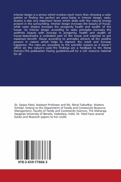 Interior design is a service which involves much more than choosing a color palette or finding the perfect art piece.Today in Interior design, vastu shastra is also very important factor which deals with the natural energy present in the surrounding. Interior design increases the beauty of house, while vastu shastra increases the prosperity health and wealth of the house. So interior design according to vastu principles increases the aesthetic beauty with increase in prosperity, health and wealth of house.Vastushastra is undivided part of the house and essential to get maximum benefit. House according to principles attracts all the positive powers in nature which helps to improve the result and increase happiness. The rules are according to the scientific reasons so it doesn't affect on the nature's cycle.The findings are a feedback to the Home Owners.This publication having guidelines,will be a rich resource material for all.