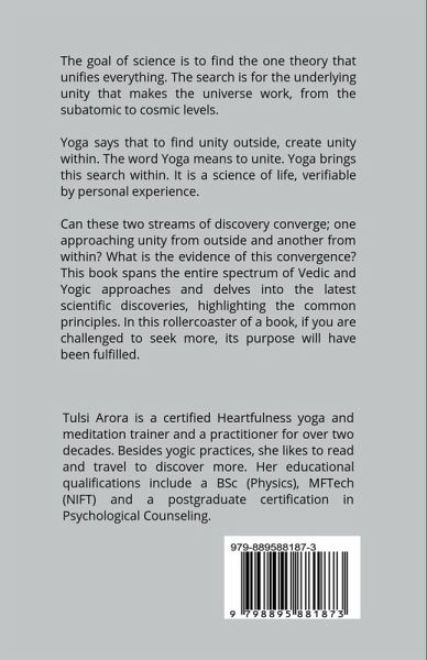 The goal of science is to find the one theory that unifies everything. The search is for the underlying unity that makes the universe work, from the subatomic to cosmic levels. Yoga says that to find unity outside, create unity within. The word Yoga means to unite. Yoga brings this search within. It is a science of life, verifiable by personal experience. Can these two streams of discovery converge; one approaching unity from outside and another from within? What is the evidence of this convergence? This book spans the entire spectrum of Vedic and Yogic approaches and delves into the latest scientific discoveries, highlighting the common principles. In this rollercoaster of a book, if you are challenged to seek more, its purpose will have been fulfilled.