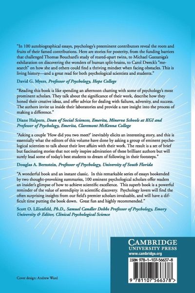 'In 100 autobiographical essays, psychology's preeminent contributors reveal the roots and fruits of their famed contributions. Here are stories for posterity, from the funding barriers that challenged Thomas Bouchard's study of reared-apart twins, to Michael Gazzaniga's exhilaration on discovering the wonders of human split-brains, to Carol Dweck's 'me-search' on how she and others could find a thriving mindset when facing obstacles. This is living history - and a great read for both psychological scientists and students.' David G. Myers, Hope College, Michigan
