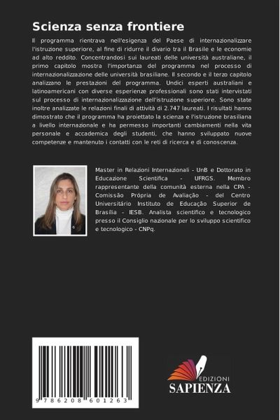 Il programma rientrava nell'esigenza del Paese di internazionalizzare l'istruzione superiore, al fine di ridurre il divario tra il Brasile e le economie ad alto reddito. Concentrandosi sui laureati delle università australiane, il primo capitolo mostra l'importanza del programma nel processo di internazionalizzazione delle università brasiliane. Il secondo e il terzo capitolo analizzano le prestazioni del programma. Undici esperti australiani e latinoamericani con diverse esperienze professionali sono stati intervistati sul processo di internazionalizzazione dell'istruzione superiore. Sono state inoltre analizzate le relazioni finali di attività di 2.747 laureati. I risultati hanno dimostrato che il programma ha proiettato la scienza e l'istruzione brasiliana a livello internazionale e ha permesso importanti cambiamenti nella vita personale e accademica degli studenti, che hanno sviluppato nuove competenze e mantenuto i contatti con le reti di ricerca e di conoscenza.