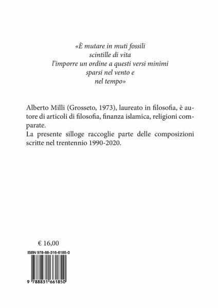Emozioni, lievi o fortissime, e moti dell'animo trascritti sulla carta, qualsiasi tipo di carta, prima di ritrovarli sbiaditi o, peggio, "ruminati" nella riflessione. Pensieri che non danno tregua ridotti al loro nocciolo, per non perderne il peso nel sovrapporvi una scorza troppo spessa di parole. I salti vertiginosi nei monoteismi e nelle tragedie indicibili, una semplice luce estiva, un bicchiere di vino, una persona o un animale caro, un trasloco, un'orfana di guerra, una catarsi dalla rete, un digiunante nella calura estiva, una sigaretta, l'universo in un quanto, fotografie in bianco e nero. Scintille di vita fermate sulla carta, salvate dal tempo.