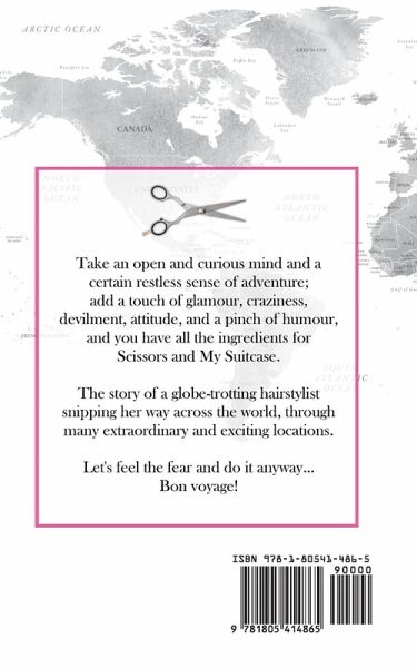 Take an open and curious mind and a certain restless sense of adventure; add a touch of glamour, craziness, devilment, attitude, and a pinch of glamour and you have all the ingredients for Scissors and my Suitcase. The story of a globe- trotting hairstylist snipping her way across the world, through many extraordinary and exciting locations. Let's feel the fear and do it anyway.......Bon voyage!