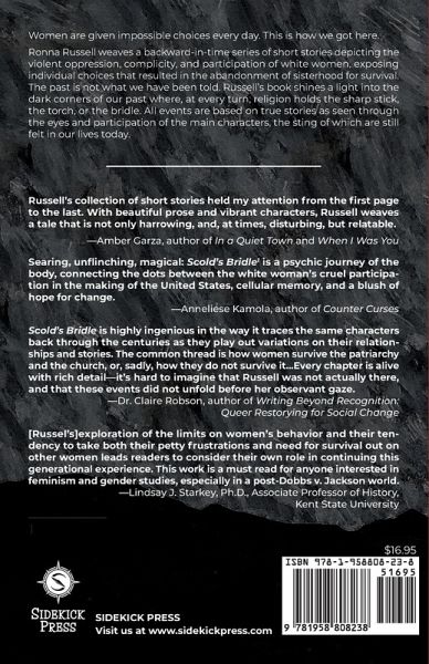 Women are given impossible choices every day. This is how we got here. Ronna Russell weaves a backward-in-time series of short stories depicting the violent oppression, complicity, and participation of white women, exposing individual choices that resulted in the abandonment of sisterhood for survival. The past is not what we have been told. Russell's book shines a light into the dark corners of our past where, at every turn, religion holds the sharp stick, the torch, or the bridle. All events are based on true stories as seen through the eyes and participation of the main characters, the sting of which are still felt in our lives today.