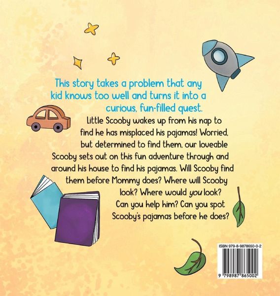 This whimsical story will have you searching for Scooby's pajamas along with him! Little Scooby is a lovable little boy who wakes up from his nap to find his pajamas missing. Worried but determined, Scooby embarks on an adventure to find his beloved pajamas before his mom does. Follow Scooby's journey as he searches through the house, encountering funny obstacles in his attempt to find his missing pajamas. Will Scooby be able to find his pajamas before his mom does? If you enjoyed the classic book 'Where's Waldo', you are sure to love this equally fun and curious tale.