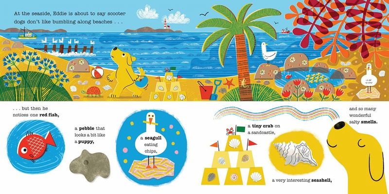 Eddie is a scooter dog, and scooter dogs love to go SUPERFAST. Flying across fields, whizzing through woods, bombing along the beach. But when Eddie has a crash and his scooter is out of action, his friend Thelma shows him all the things you only discover when you walk.