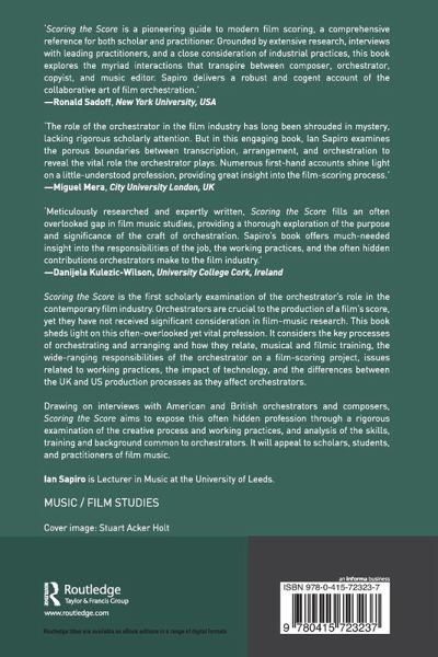 Scoring the Score is the first scholarly examination of the orchestrator's role in the contemporary film industry. Orchestrators are crucial to the production of a film's score, yet they have not received significant consideration in film-music research. This book sheds light on this often overlooked yet vital profession. It considers the key processes of orchestrating and arranging and how they relate, musical and filmic training, the wide-ranging responsibilities of the orchestrator on a film-scoring project, issues related to working practices, the impact of technology, and the differences between the UK and US production processes as they affect orchestrators. Drawing on interviews with American and British orchestrators and composers, Scoring the Score aims to expose this often hidden profession through a rigorous examination of the creative process and working practices, and analysis of the skills, training and background common to orchestrators. It will appeal to scholars, students, and practitioners of film music.