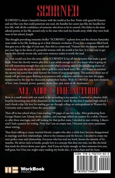 SCORNED is about a beautiful lawyer with the world at her feet. Petite with graceful features and sea blue eyes that could penetrate any soul, she handles her career just like she handles her love life: with all the confidence of someone who loves to be in control. Her father is the most adored person in her life, second only to the man who took her breath away while they were both were in law school, Joseph. This thought-provoking romantic thriller "SCORNED," explores love and the choices Samantha must make in her life, leading up to a final climactic revelation. If you love a suspense-filled book that gets you at the edge of your seat, then this is a must-read. Venture into the fantasy world and put your legs in the shoes of a powerful woman with the world at her feet. It is very easy to get lost in this cleverly woven tale, and every sentence makes it worth the read.So, what would you love the most about SCORNED? It has all the elements that make a good book. From the cleverly woven plot that is just subtle enough to let you know what is going on but still mysterious enough that you never see what's coming next to the tantalizing choice of words that is just the perfect tone, this is gold for every book lover. We can't forget to mention the steamy sex scenes that push beyond the limits of your imagination. The author's clever use of words will get your juices flowing as it connects with your core and draws you into the pages, mesmerized by the way the characters explore their bodies. With SCORNED, you have elements of love, hate, betrayal, power, passion, desire, lust, and, most of all, dominance. One is not independent of the other as they pop up throughout the book. Do you know how it is when you are so absorbed in a book that you don't want to do anything in the real world? As you meet cliffhanger after cliffhanger, you can't put the book down until you get to the very last page? That is exactly how it is with SCORNED. You never want to stop until the final page. So, what are you waiting for? Go on a journey with this fantastic book, and it will have you reading with delight from the first page to the last.