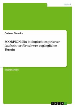 Studienarbeit aus dem Jahr 2010 im Fachbereich Elektrotechnik, Note: 2,0, Universität Hildesheim (Stiftung) (Institut für Physik und Technik), Veranstaltung: Kolloquium Technik, Sprache: Deutsch, Abstract: Die Forscher des Deutschen Forschungszentrums für Künstliche Intelligenz (DFKI)untersuchten den Aufbau und das Bewegungsmuster des Skorpions und begannen im Jahr 1999 mit dem Projekt SCORPION.Ziel dieses Projektes war es, einen sehr robusten, achtbeinigen Roboter zu entwickeln, der für sehr steilen und unebenen Untergrund geeignet ist. Der SCORPION verwendet ein biomimetisches Steuerungskonzept, das sehr flexible Laufbewegungen über verschiedenste Geländetypen ermöglicht. Die Laufmuster orientieren sich an den Bewegungen echterSkorpione.In dieser Arbeit werden zunächst die verschiedenen Entwicklungsstufen des SCORPIONs behandelt und es wird dargelegt, welche Einsatzgebiete für den SCORPION bestehen. Des Weiteren werden das Konzept biologisch inspirierter Roboter und biomimetische Steuerungsansätze vorgestellt, letztere insbesondere bezogen auf das Steuerungskonzept des SCORPIONs. Imweiteren Verlauf der Arbeit werden die einzelnen Funktionen des SCORPIONs, seine Schwächen und sein heutiger Einsatz aufgezeigt.
