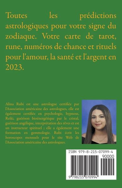 Toutes les prédictions astrologiques pour votre signe du zodiaque. Votre carte de tarot, rune, numéros de chance et rituels pour l'amour, la santé et l'argent en 2023.