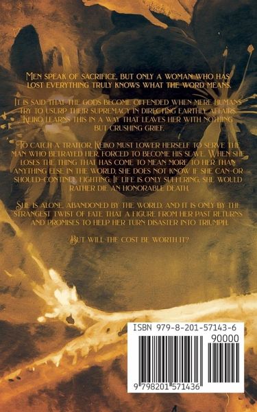 Men speak of sacrifice, but only a woman who has lost everything truly knows what the word means. It is said that the gods become offended when mere humans try to usurp their supremacy in directing earthly affairs. Keiko learns this in a way that leaves her with nothing but crushing grief. To catch a traitor, Keiko must lower herself to serve the man who betrayed her, forced to become his slave. When she loses the thing that has come to mean more to her than anything else in the world, she does not know if she can-or should-continue fighting. If life is only suffering, she would rather die an honorable death. She is alone, abandoned by the world, and it is only by the strangest twist of fate that a figure from her past returns and promises to help her turn disaster into triumph. But will the cost be worth it?