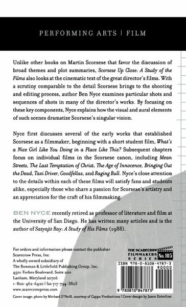 This study of Martin Scorsese's works looks closely at the cinematic text of the films themselves. Unlike other books on Scorsese, which favor the discussion of broad themes and plot summary, Nyce also examines particular shots and sequences of shots. Scorsese Up Close mirrors the same scrutiny that the filmmaker brings to the shooting and editing process.