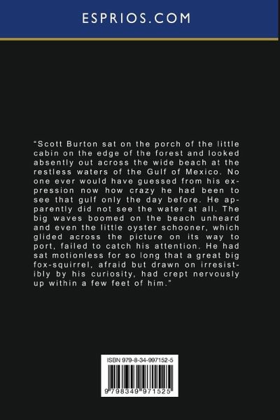 "Scott Burton sat on the porch of the little cabin on the edge of the forest and looked absently out across the wide beach at the restless waters of the Gulf of Mexico. No one ever would have guessed from his expression now how crazy he had been to see that gulf only the day before. He apparently did not see the water at all. The big waves boomed on the beach unheard and even the little oyster schooner, which glided across the picture on its way to port, failed to catch his attention. He had sat motionless for so long that a great big fox-squirrel, afraid but drawn on irresistibly by his curiosity, had crept nervously up within a few feet of him."