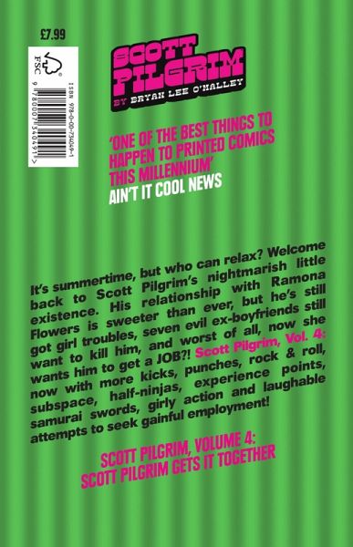 It's summertime, but who can relax? Welcome back to Scott Pilgrim's nightmarish little existence. His relationship with Ramona Flowers is sweeter than ever, but he's still got girl troubles, seven evil ex-boyfriends still want to kill him, and worst of all, now she wants him to get a JOB?! Scott Pilgrim, Vol. 4: Now with more kicks, punches, rock & roll, subspace, half-ninjas, experience points, samurai swords, girly action and laughable attempts to seek gainful employment!