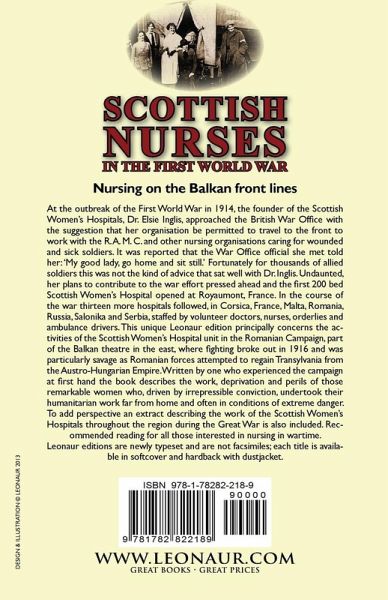 Nursing on the Balkan front lines At the outbreak of the First World War in 1914, the founder of the Scottish Women's Hospitals, Dr. Elsie Inglis, approached the British War Office with the suggestion that her organisation be permitted to travel to the front to work with the R. A. M. C. and other nursing organisations caring for wounded and sick soldiers. It was reported that the War Office official she met told her: 'My good lady, go home and sit still.' Fortunately for thousands of allied soldiers this was not the kind of advice that sat well with Dr. Inglis. Undaunted, her plans to contribute to the war effort pressed ahead and the first 200 bed Scottish Women's Hospital opened at Royaumont, France. In the course of the war thirteen more hospitals followed, in Corsica, France, Malta, Romania, Russia, Salonika and Serbia, staffed by volunteer doctors, nurses, orderlies and ambulance drivers. This unique Leonaur edition principally concerns the activities of the Scottish Women's Hospital unit in the Romanian Campaign, part of the Balkan theatre in the east, where fighting broke out in 1916 and was particularly savage as Romanian forces attempted to regain Transylvania from the Austro-Hungarian Empire. Written by one who experienced the campaign at first hand the book describes the work, deprivation and perils of those remarkable women who, driven by irrepressible conviction, undertook their humanitarian work far from home and often in conditions of extreme danger. To add perspective an extract describing the work of the Scottish Women's Hospitals throughout the region during the Great War is also included. Recommended reading for all those interested in nursing in wartime. Leonaur editions are newly typeset and are not facsimiles; each title is available in softcover and hardback with dustjacket.