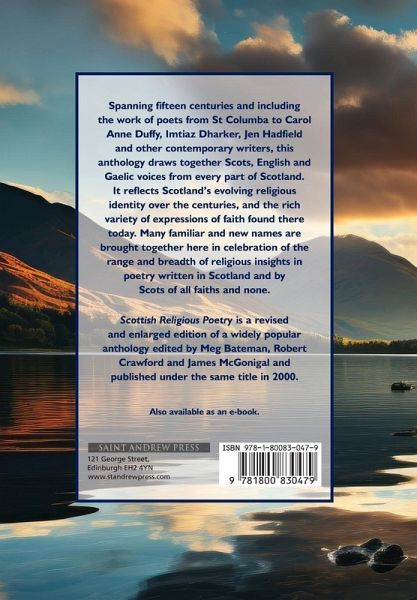 "A comprehensive selection of religious poetry that Scotland has produced over the centuries, including some Gaelic voices and reflecting the mixed religious profile of Scotland today. An earlier edition published in 2000 was a huge success, selling out very quickly. This eagerly awaited follow-up offers the very best from a diverse, often turbulent history and reveals an attractive and distinctive spirituality that is unique to Scotland. The poetry spans 15 centuries and includes poets from every corner of Scotland. It reflects the rich range of language across regions and centuries and is a unique collection of the deepest religious thought of a nation. Selected and introduced by three experts in the field, this offers an attractive and informed volume that will appeal to all lovers of Scottish literature."--